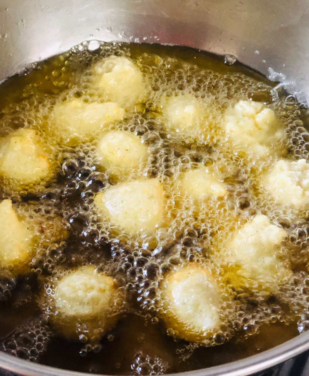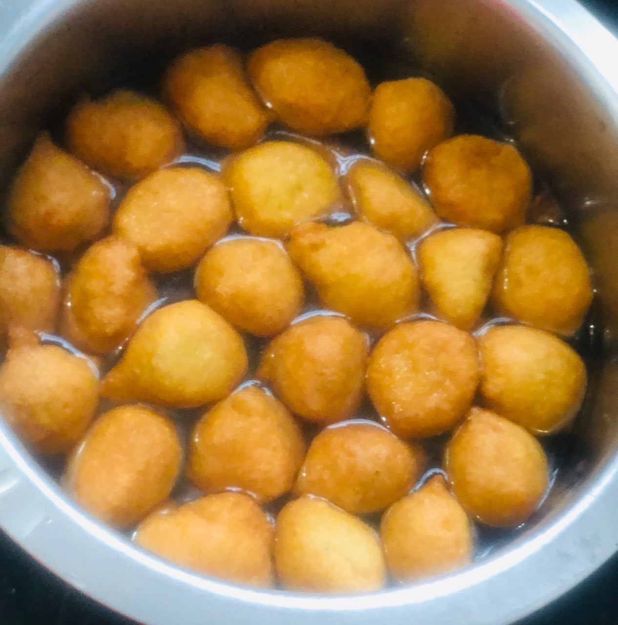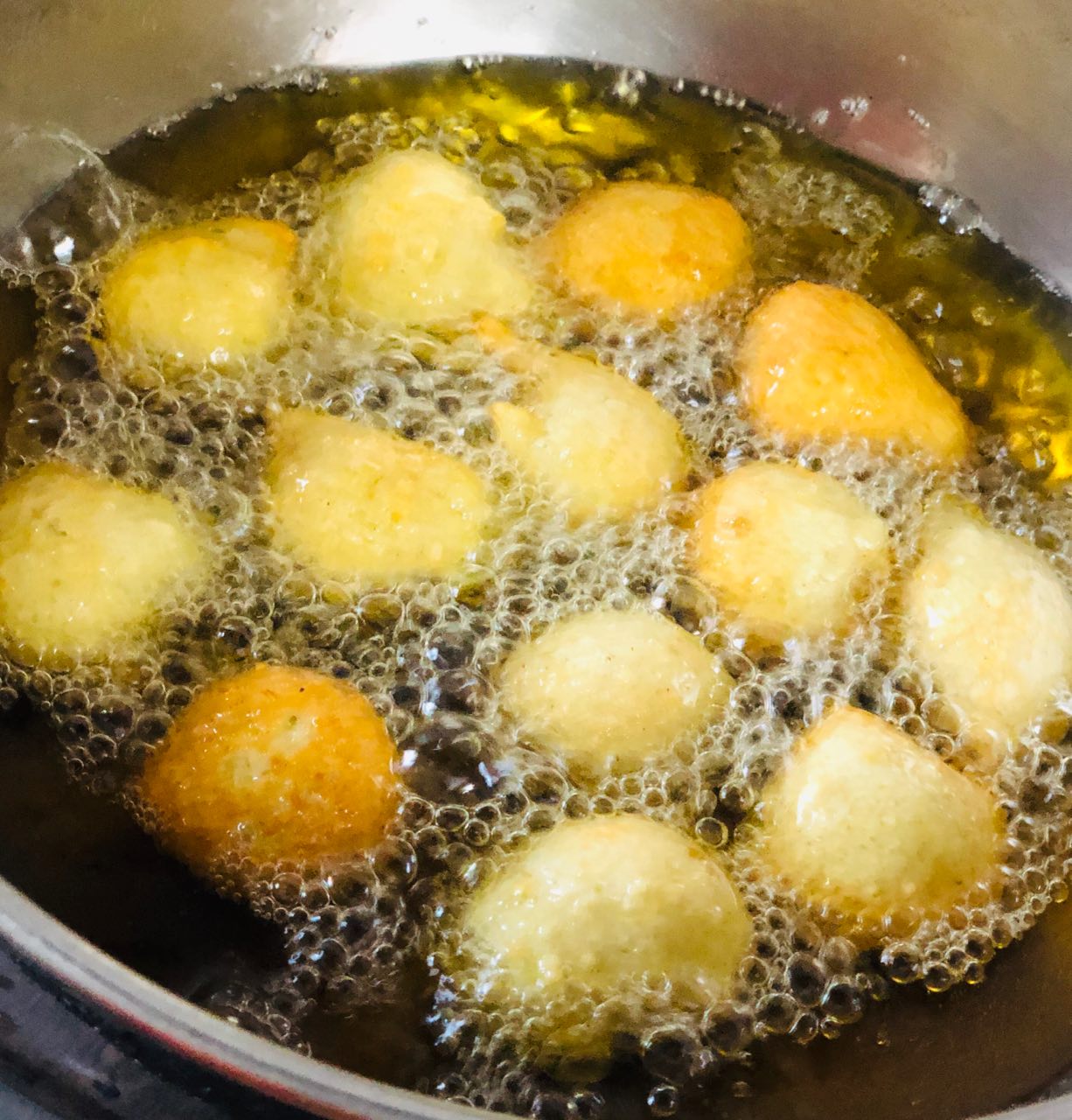 | DROP THE LEMON SIZED BALLS(BATER) INTO HOT OIL USING YOUR HAND |