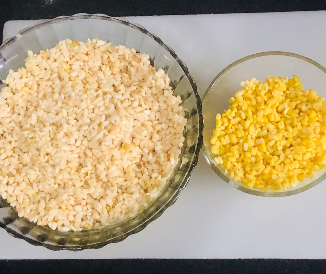 2) 7 घण्टे के बाद आप देखेंगे कि दाल फूलकर दुगनी हो गई है। अब इसमें से पानी निकाल लें।