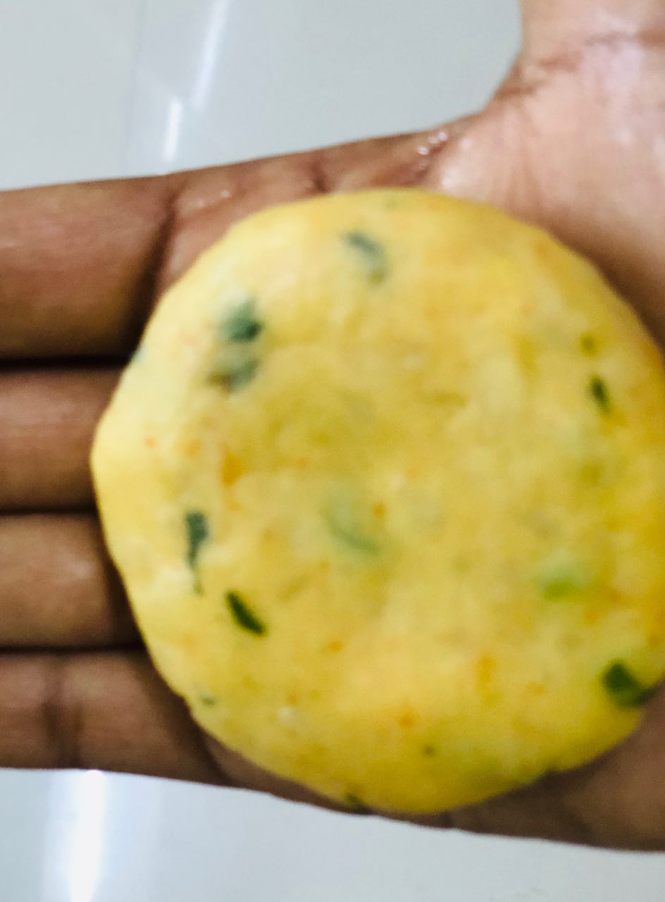 | MAKE 1/2 INCH FLAT CIRCULAR TIKKI IN THICKNESS |