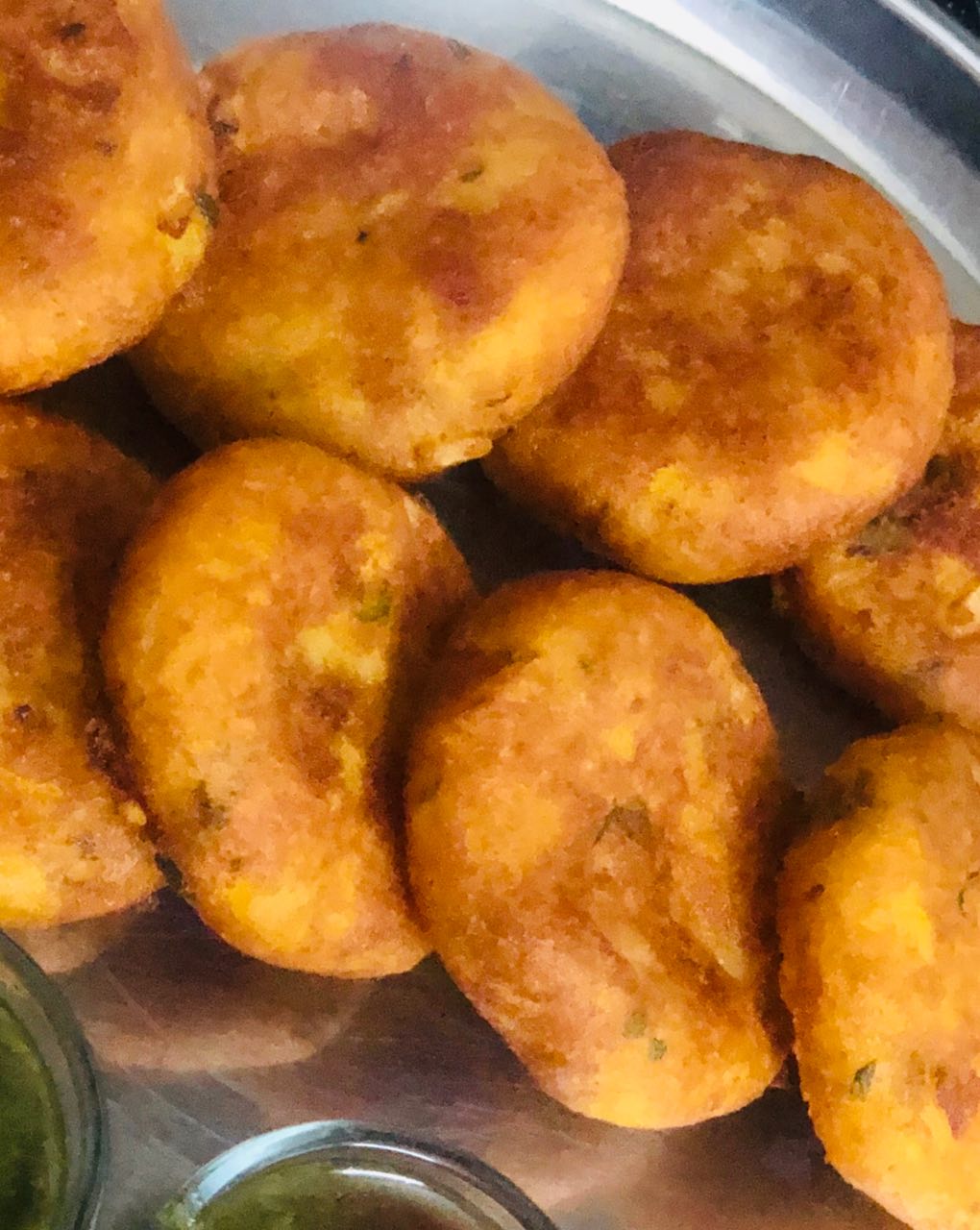 | PUT THE ALOO TIKKIES IN A SERVING PLATE & SERVE HOT WITH ANY GREEN CHUTNEY & SWEET TAMARIND CHUTNEY OR TOMATO KETCHUP |