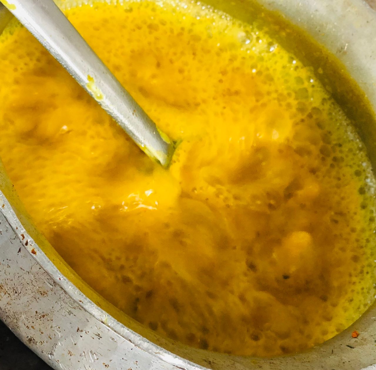 1) कुकर का प्रेशर खतम होने पर ढक्कन खोलकर दाल को मथनी से मैश कर लें।