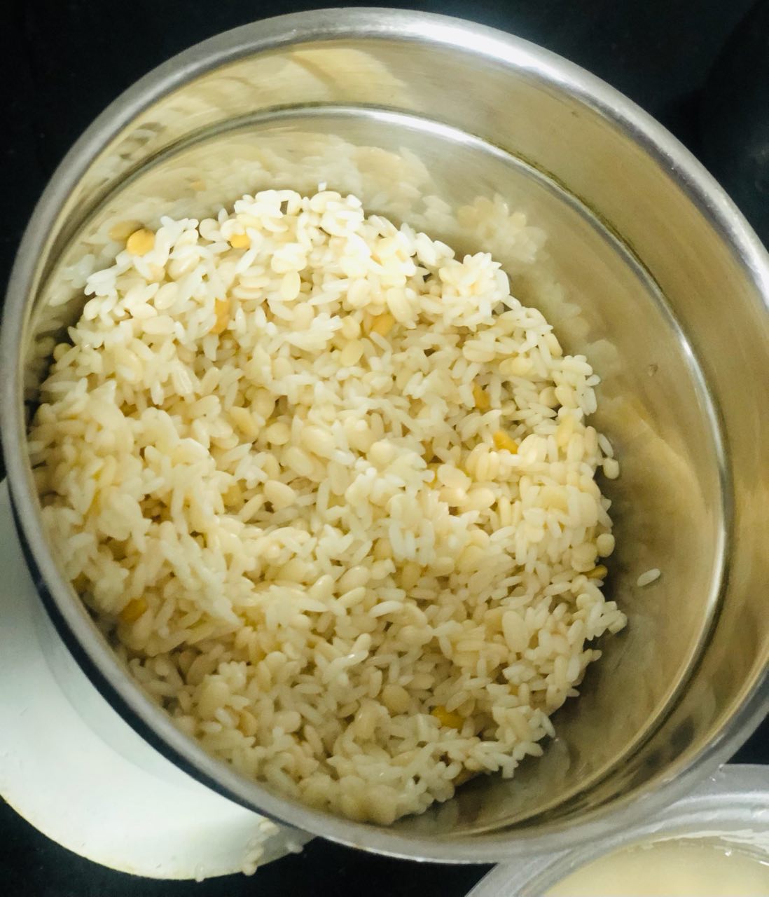 1) 7 घण्टे बाद हम देखेंगे कि भिगोकर रखे हुए दाल और चावल फूलकर तैयार हो गए हैं ।