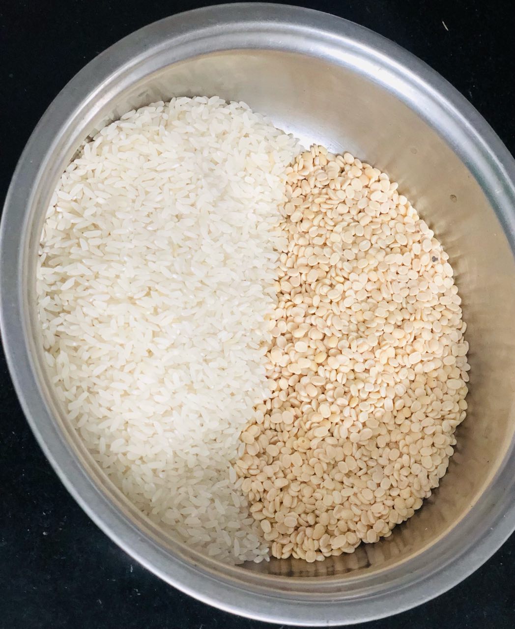 2) एक बडे पतीले में 1cup चावल और 1/2cup उड़द दाल लीजिए।