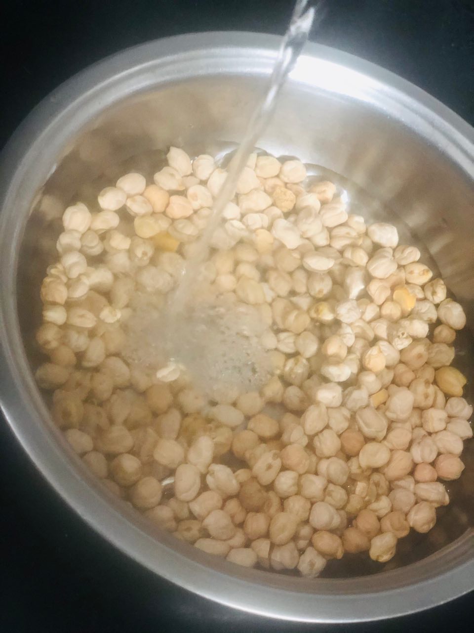 2) चना में 3 कप पानी डालकर रात भर या 8-10 घण्टे तक भिगोकर रखें।