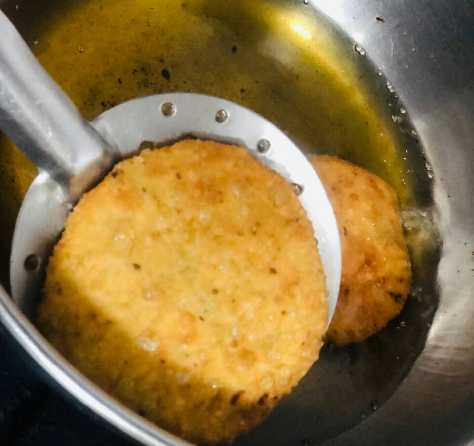 | WHEN THE KACHOURIES COME ON TOP OF THE OIL, PRESS IT SMOOTHLY WITH A SPETULA |