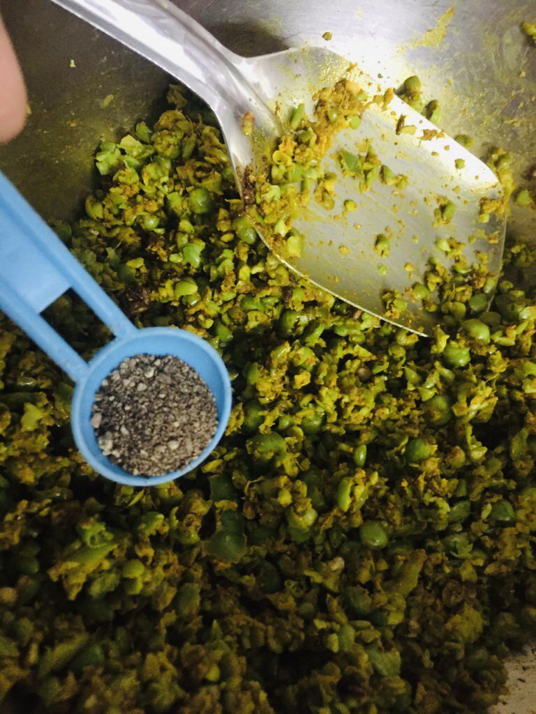 | NOW ADD 2 tbsp PREPARED PANEER & PEAS STUFFING |