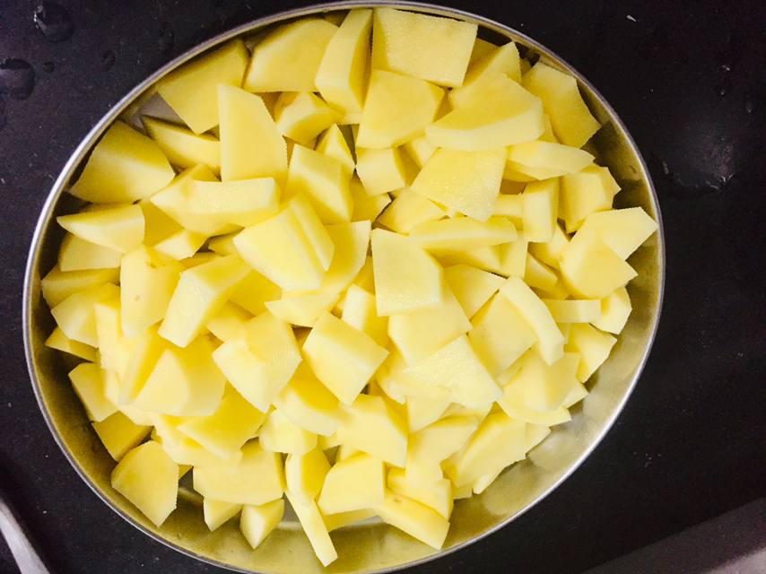 ● आलू को छोटे और पतले टुकडों में ही काटे अगर हम ज्यादा बड़े टुकड़ो में काटेंगे तो आलू अच्छे से गल नहीं पाएंगे।