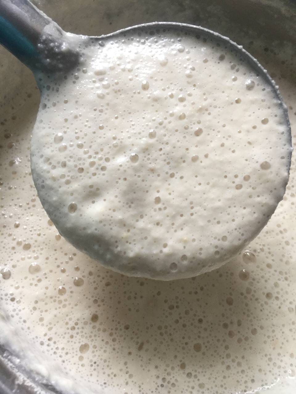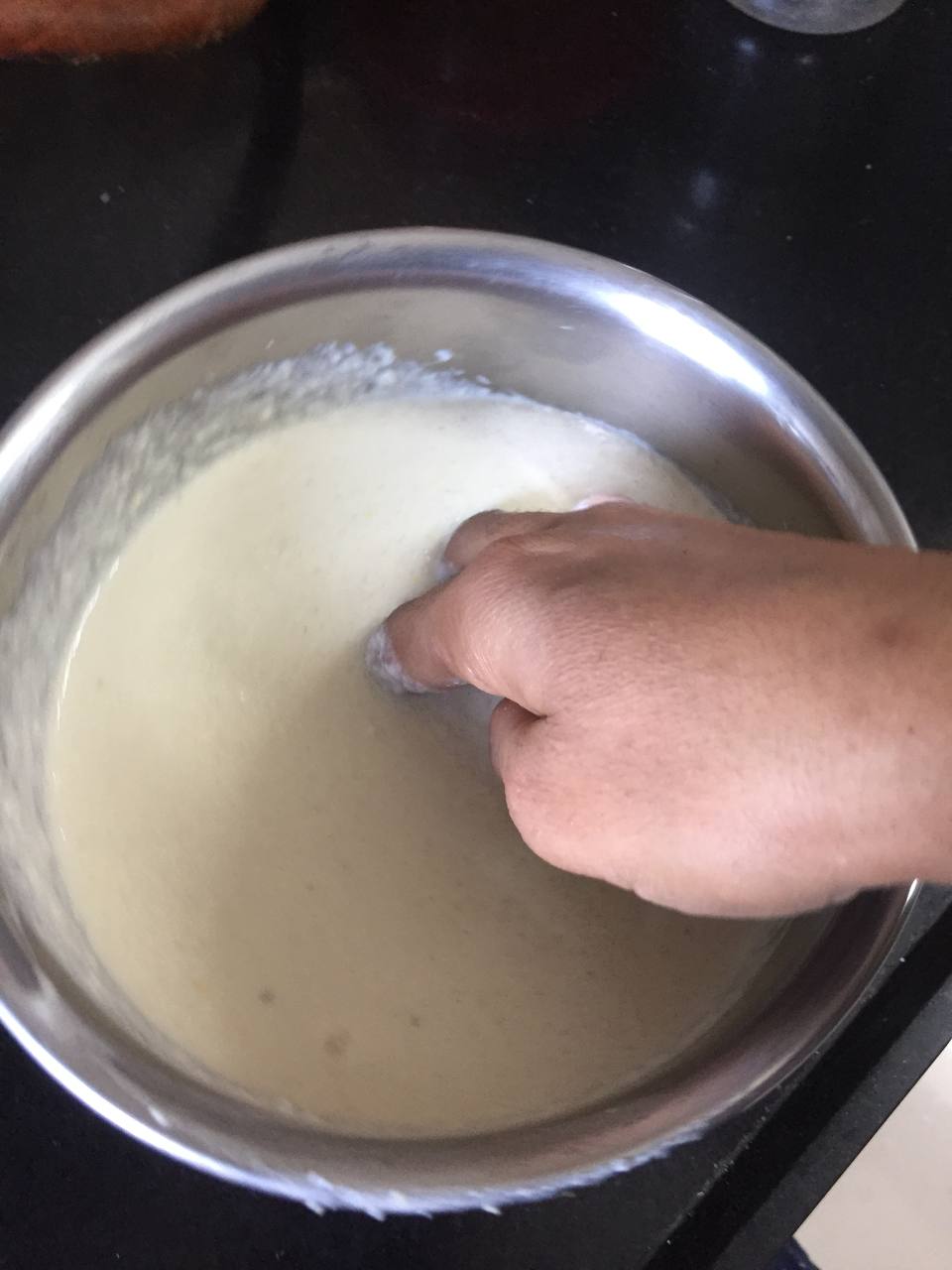 9) फेटने से बेटर फूला हुआ लगेगा, बेटर के फूलने के बाद ढक्कन लगा कर 7 से 8 घण्टे तक किसी गरम और अंधेरी जगह पर फरमेन्ट होने के लिए रख दीजिए ।