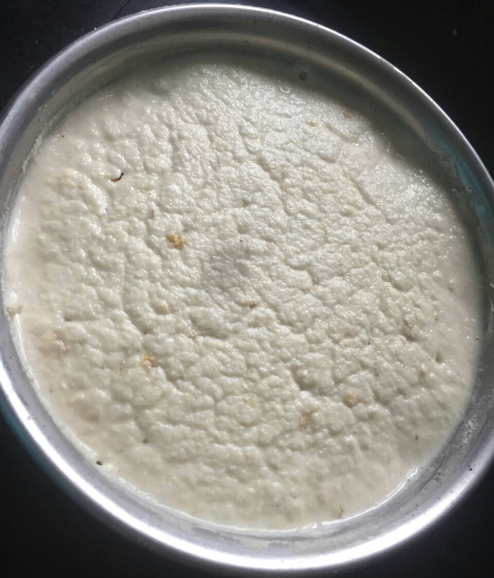 3) 7 घण्टे बाद हम देखेंगे कि भिगोकर रखे हुए दाल और चावल फूलकर तैयार हो गए हैं ।