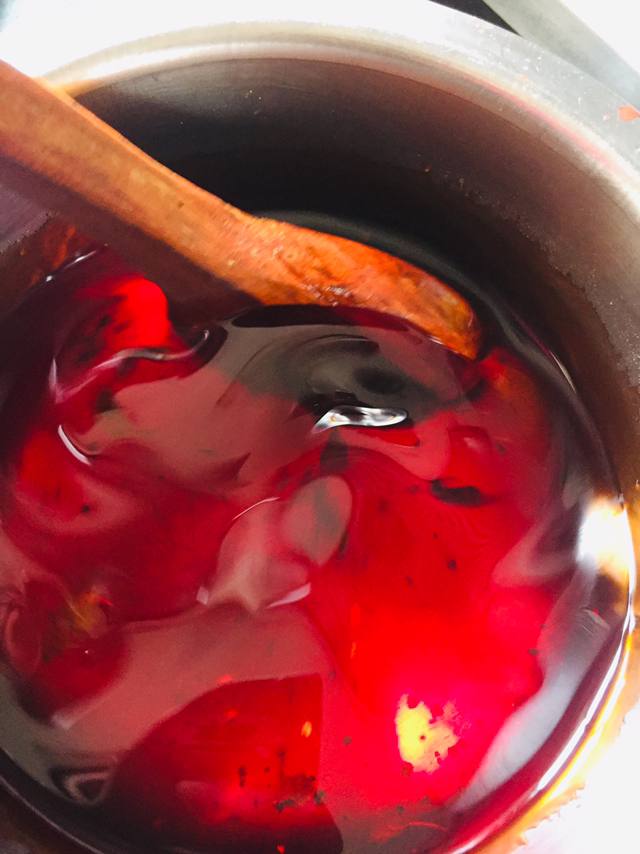 12) आप देख सकते हैं कि शर्बत ठंडा होने के बाद गाढ़ा हो गया है।