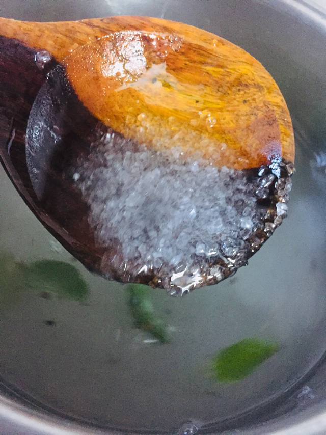 4) इसे सतत चलाते रहे, ताकि शक्कर पतीले के तले में जम न जाए।
