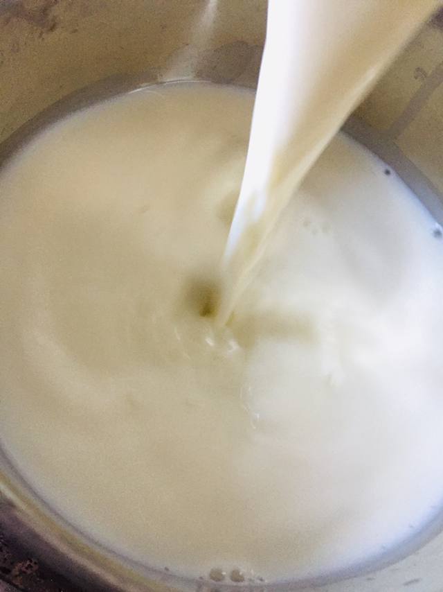 6) सॉसpan के किनारों पर जो दूध की मलाई बनकर चिपकती जाए उसे चमच्च से निकालकर दूध में मिलाते जाऐ।