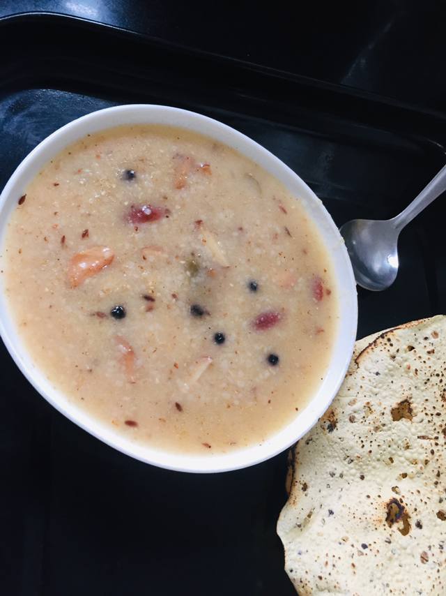 | Enjoy the high protein breakfast sindhi sweet daliya with a papad |
