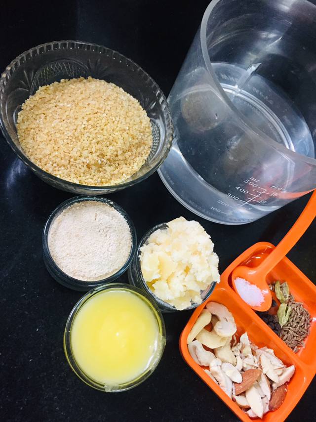 | Today we will learn how to make sweet daliya (mitho bhat) which is made up of broken wheat, cardamom, cumin seeds, black pepper,dry fruit, jaggery & pure ghee. |