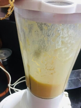 6) pineapple juice अच्छे से mix होके तैयार न हो जाए तब तक इसे grind करें।(इस स्टेप पे 2-3 मिनिट तक मिक्सर चलाना है।)