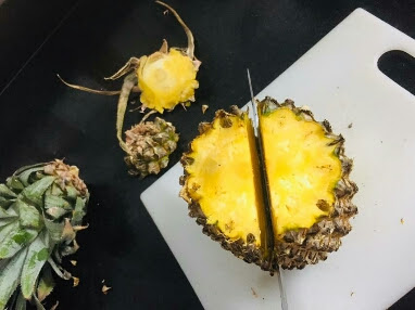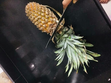 2) अब पाइनएप्पल को सीधा खड़ा करें।