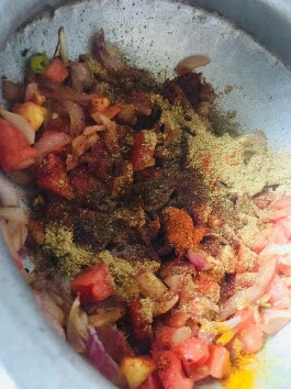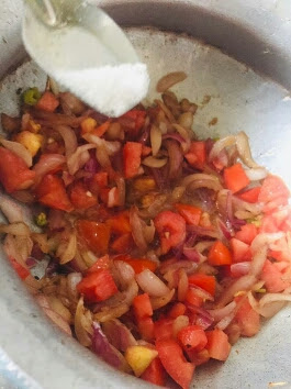 | Add chopped tomato, green chilli & salt |