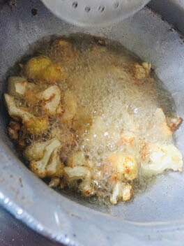 2) अब इस गर्म तेल में गोभी को हल्के ब्राउन हो जाने तक तलें।
