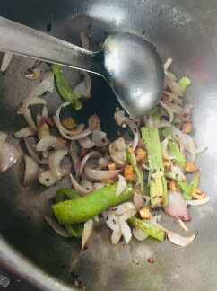 | Add chopped garlic, ginger & green chilli |