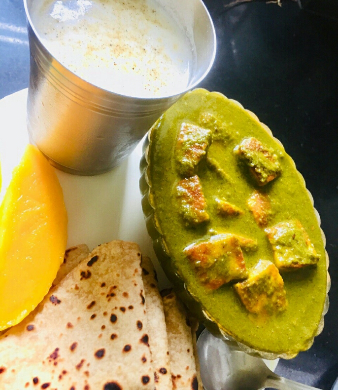 | Today we will learn how to make palak paneer, which is made up of fresh spinach, paneer, onion, garlic, ginger, tomato, green chilly, & lndian spices. |
