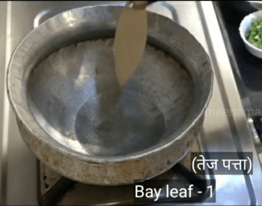 2. तेल के हल्के गरम होने पर तेजपत्ता डालें ,