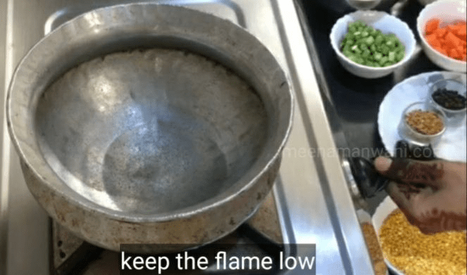 1. एक भारी तले वाली हांडी या कड़ाई को धीमी आंच पर रखें।