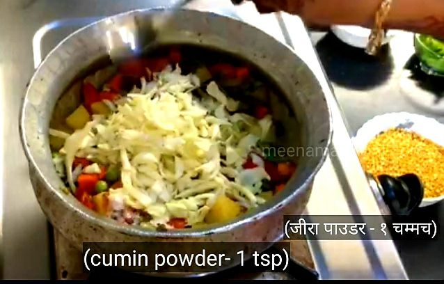 9. कटे हुए टमाटर, पत्तागोभी और भुना हुआ जीरा डालकर अच्छी तरह मिक्स कर दीजिए।