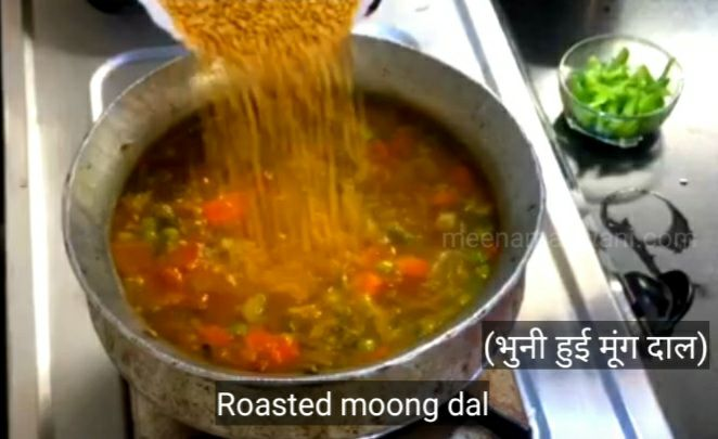 ★ यह खिचड़ी बनाने के लिए मूंग दाल को धोए बिना सूखा ही भुना जाता है।