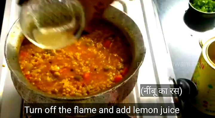 21. 5-10 मिनट के बाद ढक्कन खोलकर ऊपर से १ नींबू का juice, २ चम्मच घी और हरा धनिया डाल दीजिए।