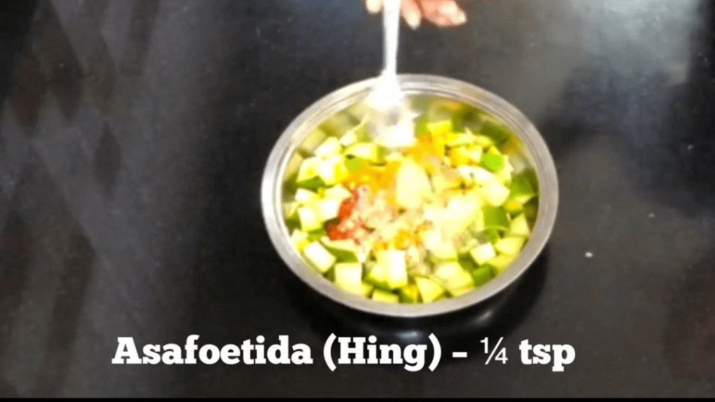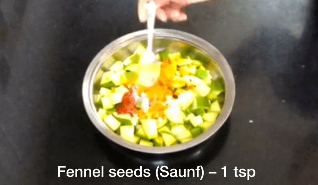 - उसमें नमक, हल्दी, लाल मिर्च पाउडर, कश्मीरी लाल मिर्च पाउडर, सौंफ, चाट मसाला और हींग डालें।