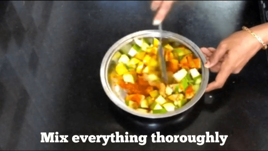 - अच्छे से मिलाएं ताकि सभी टुकड़ों पर मसाले लग जाएं।