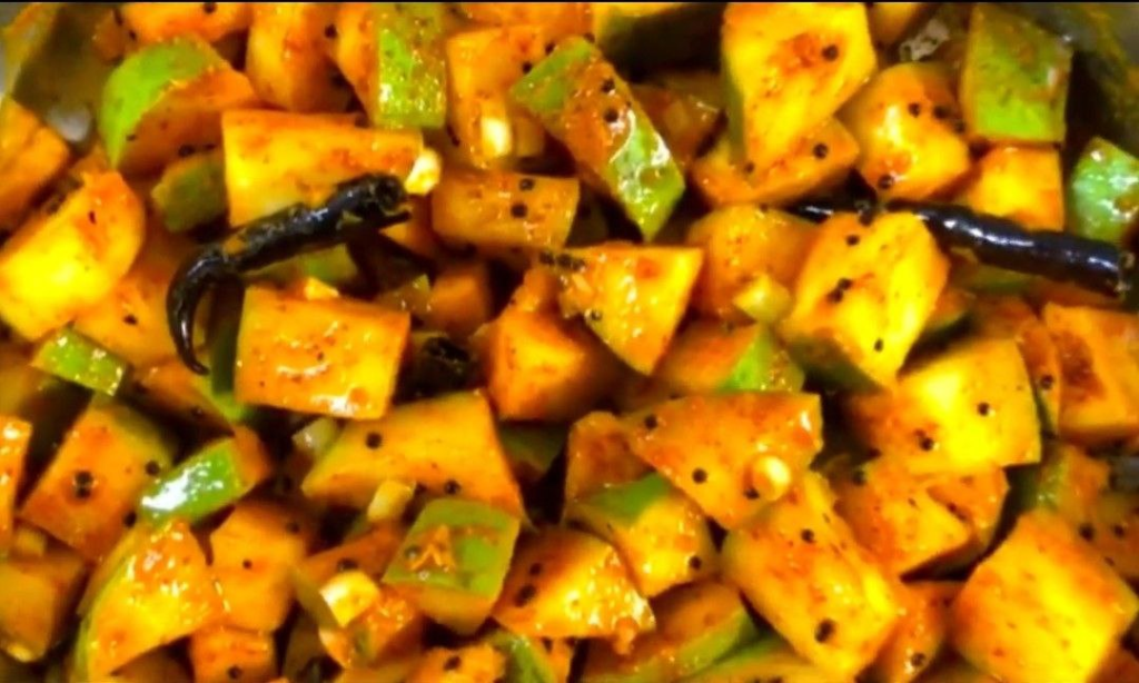 उ: नहीं, पका आम नरम और मीठा होता है, जो इस तरह के अचार के लिए सही नहीं है।