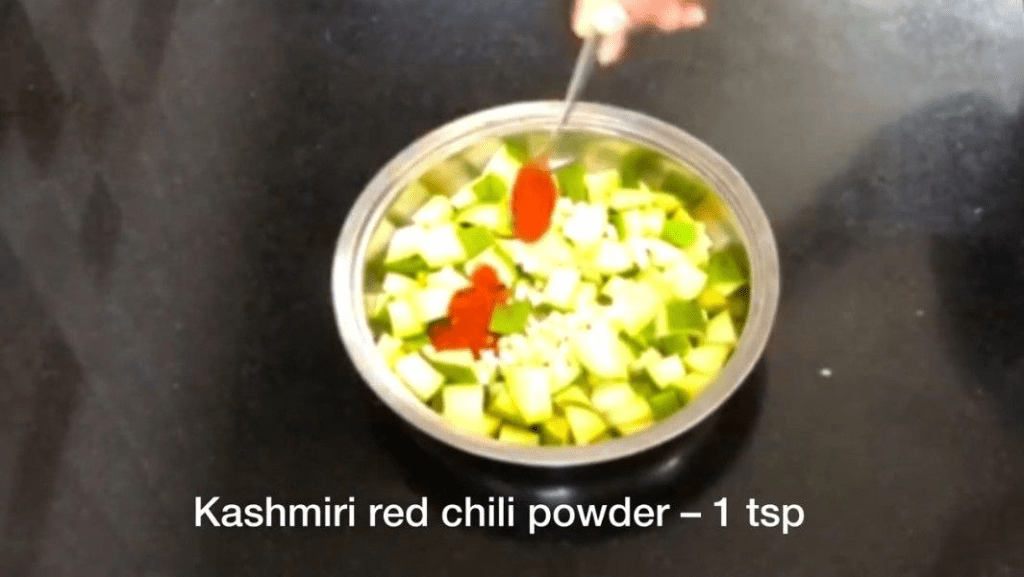 - छोटे-छोटे टुकड़ों में काट लें (बीज निकाल दें)।
