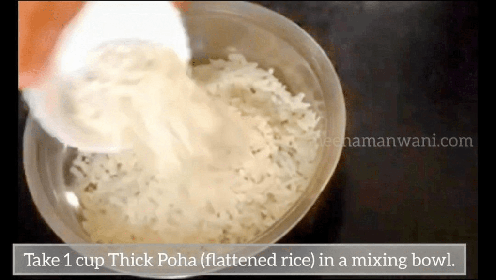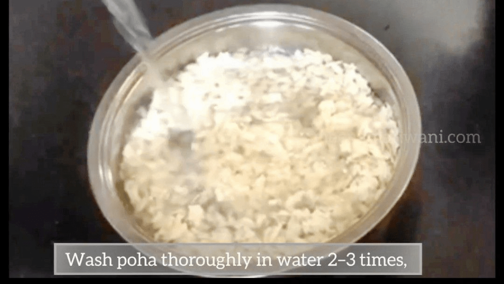 2. 1 कप मोटा पोहा लें, 2–3 बार पानी से धो लें।