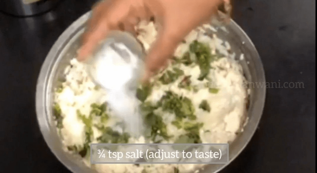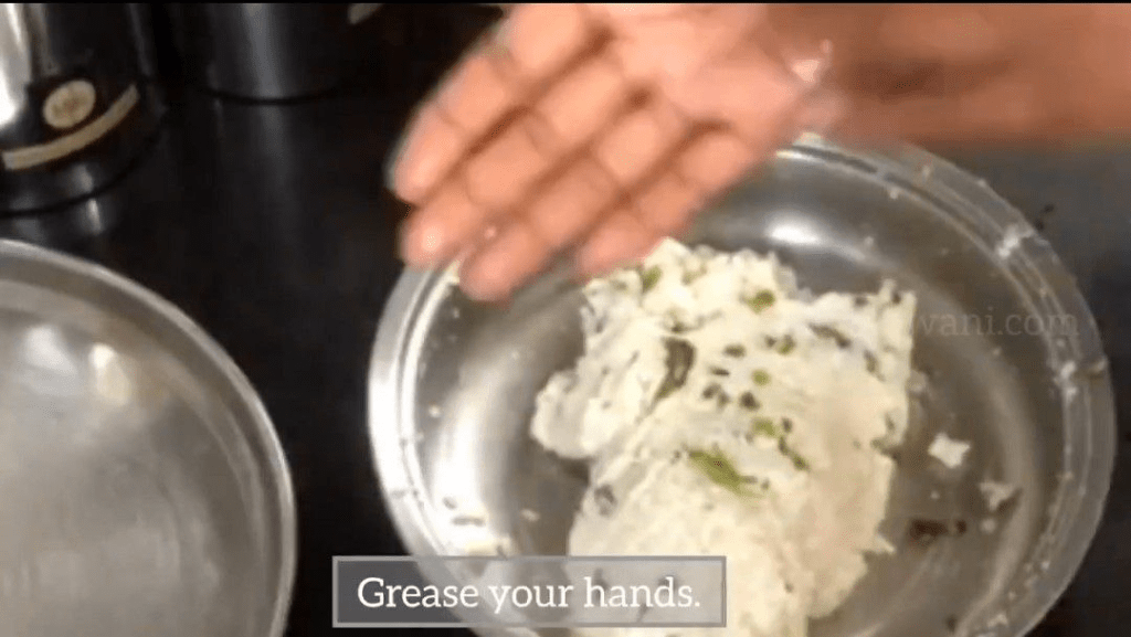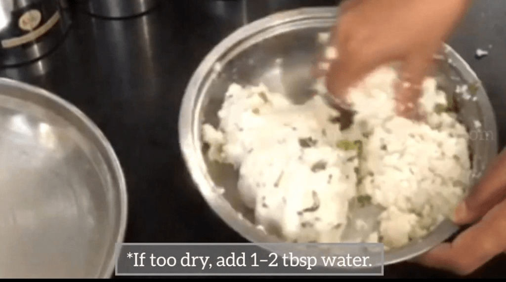 मिश्रण थोड़ा गीला लेकिन बंधने लायक होना चाहिए।