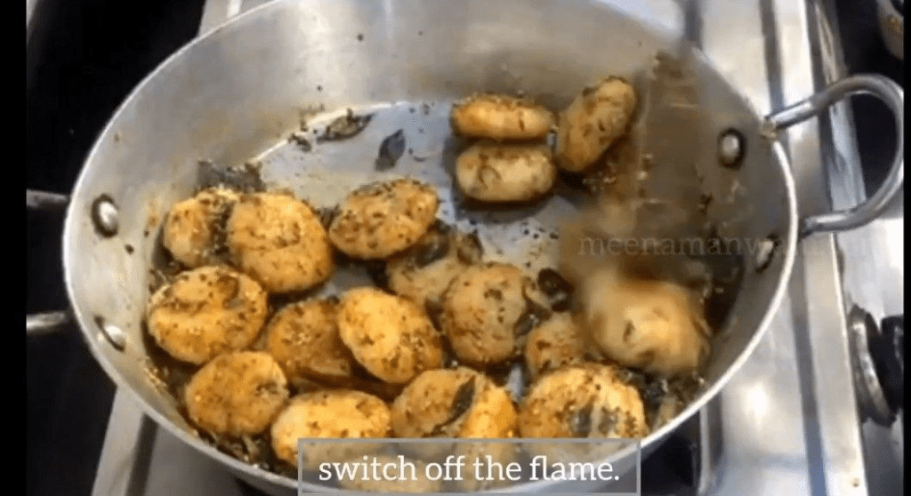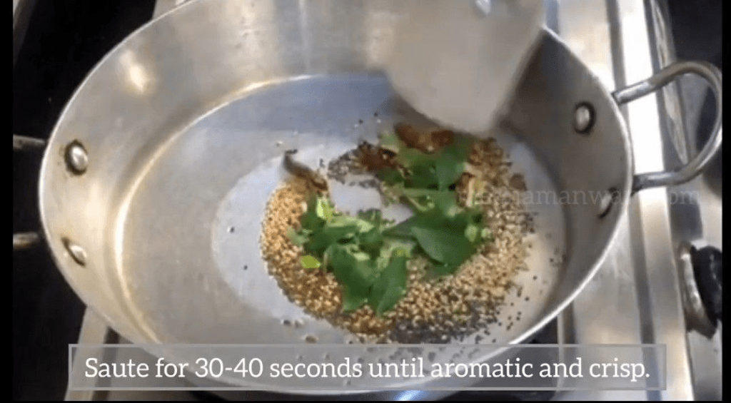 1–2 मिनट भूनें जब तक तड़का खस्ता हो जाए।