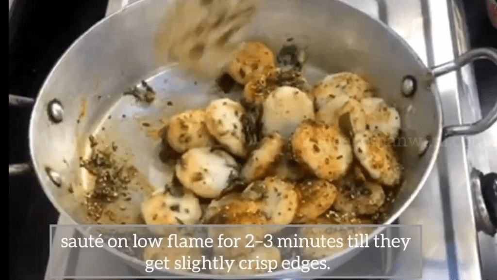 धीमी आंच पर 2–3 मिनट भूनें और हल्के कुरकुरे होने दें।