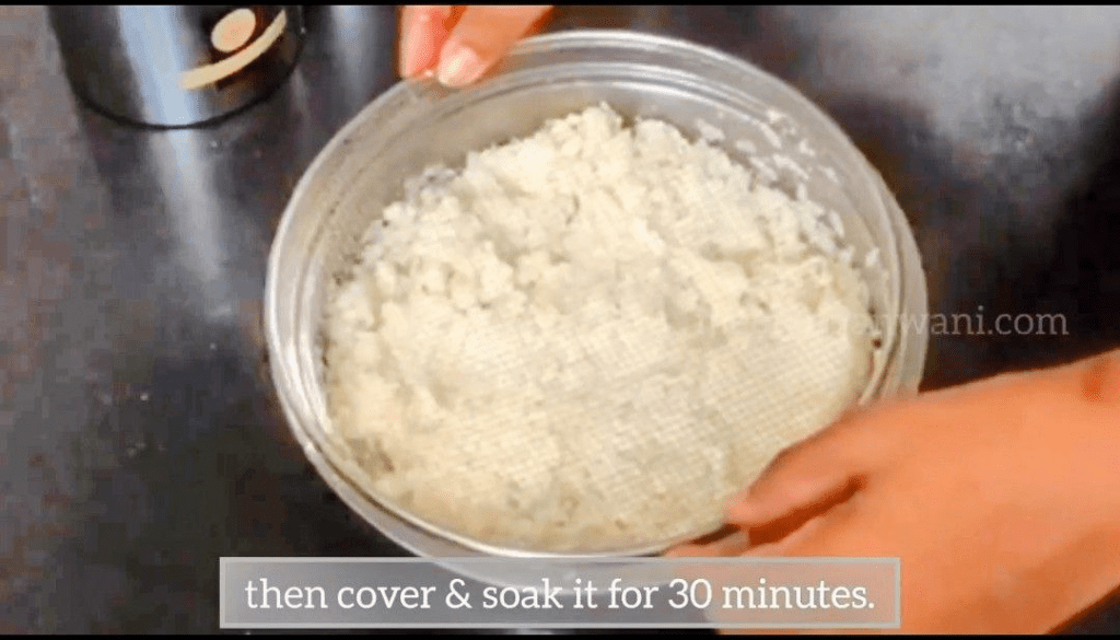 3. छानकर 2–3 मिनट के लिए अलग रख दें ताकि वो नरम हो जाए।