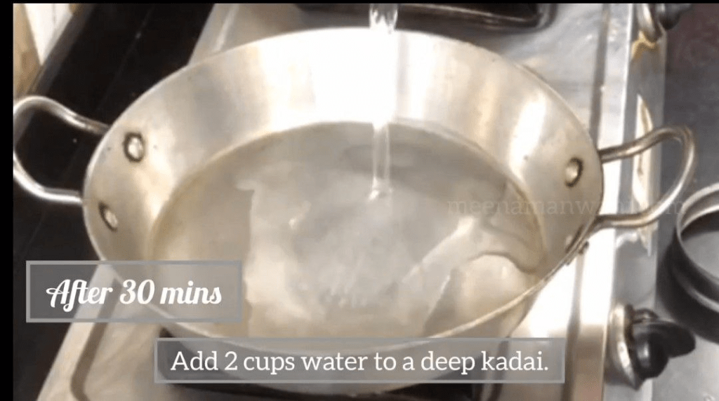 2. कड़ाही में 2 कप पानी डालें, उसमें स्टील की रिंग रखें और मध्यम आंच पर उबालें।