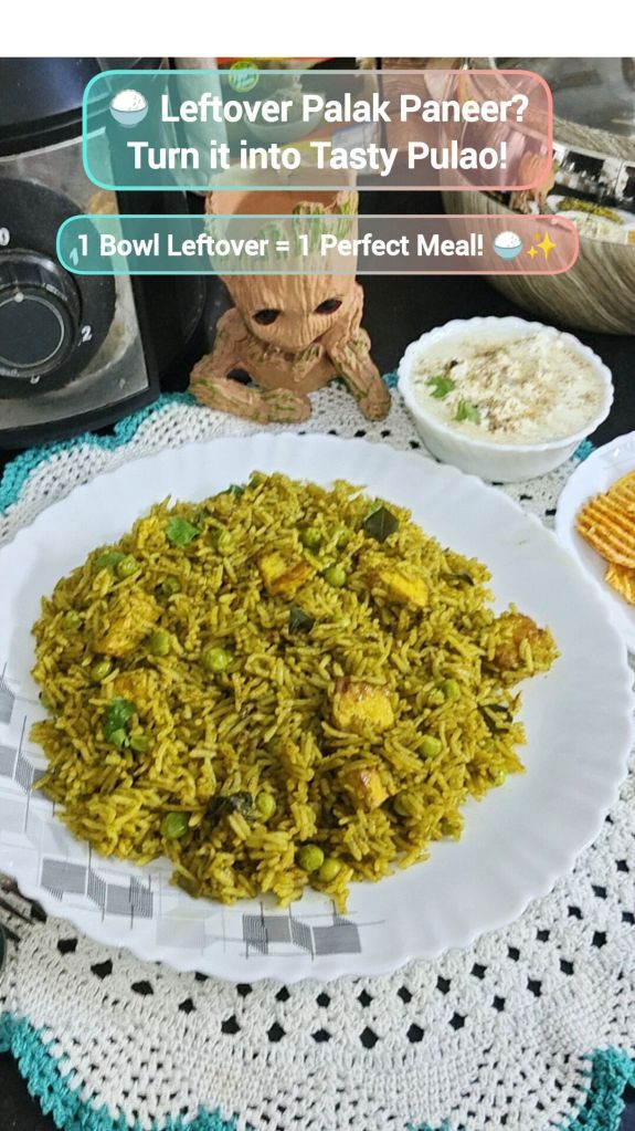рдЕрдЧрд░ рдЖрдкрдХреЗ рдкрд╛рд╕ рдмрдЪрд╛ рд╣реБрдЖ рдкрд╛рд▓рдХ рдкрдиреАрд░ рд╣реИ, рддреЛ рдЙрд╕реЗ рдлреЗрдВрдХрдиреЗ рдХреА рдЬрдЧрд╣ рдЗрд╕ рд╕реНрд╡рд╛рджрд┐рд╖реНрдЯ тАЬрд▓реЗрдлреНрдЯрдУрд╡рд░ рдкрд╛рд▓рдХ рдкрдиреАрд░ рдкреБрд▓рд╛рд╡тАЭ рдореЗрдВ рдмрджрд▓ рджреЗрдВ! рдпрд╣ рдЭрдЯрдкрдЯ рдмрдирдиреЗ рд╡рд╛рд▓рд╛, рдмрд┐рдирд╛ рдкреНрдпрд╛рдЬ-рд▓рд╣рд╕реБрди рдХрд╛ рд░рд╛рдЗрд╕ рдбрд┐рд╢ рд╣реИ тАФ рдЬреЛ рд╡рд┐рдВрдЯрд░ рдореЗрдВ рдЧрд░реНрдорд╛рдЧрд░реНрдо рджрд╣реА рдпрд╛ рд╡рд╛рдлрд░реНрд╕ рдХреЗ рд╕рд╛рде рдЦрд╛рдиреЗ рдореЗрдВ рдмреЗрд╣рдж рд╕реНрд╡рд╛рджрд┐рд╖реНрдЯ рд▓рдЧрддрд╛ рд╣реИред