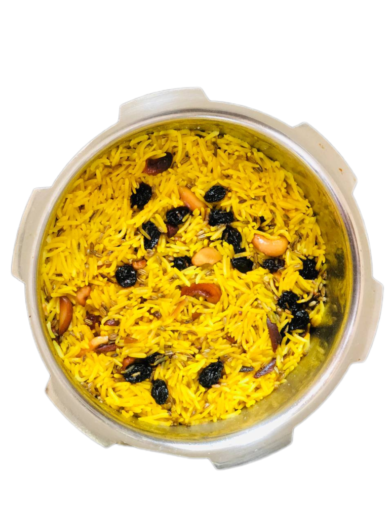 अंत में भुने हुए ड्राय फ्रूट्स डालकर कुकर में सिर्फ 1 सीटी तक पकाया जाता है, जिससे चावल परफेक्ट बनते हैं।