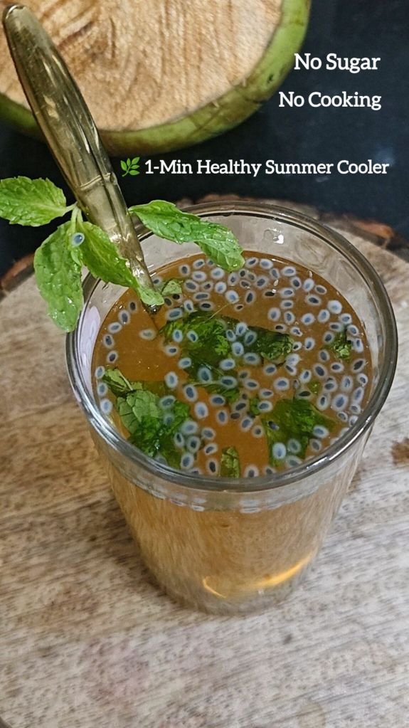 इस रेसिपी में हमने इस्तेमाल किया है सब्जा सीड्स, नारियल पानी, नींबू, पुदीना और शहद – जो शरीर को ठंडा रखने और एनर्जी देने में मदद करता है 💧